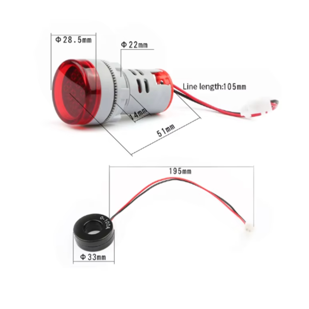 Đèn led AD136-22SVA báo Vôn và Ampere tròn phi 22mm giống như dụng cụ đo hiệu điện thế xoay chiều giữa 2 đầu đoạn mạch và dòng điện chạy qua.